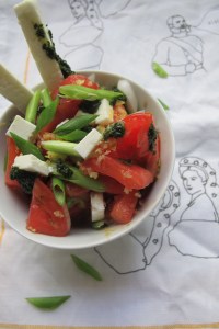 - Zum Schluss den Feta grob über den Salat bröseln.