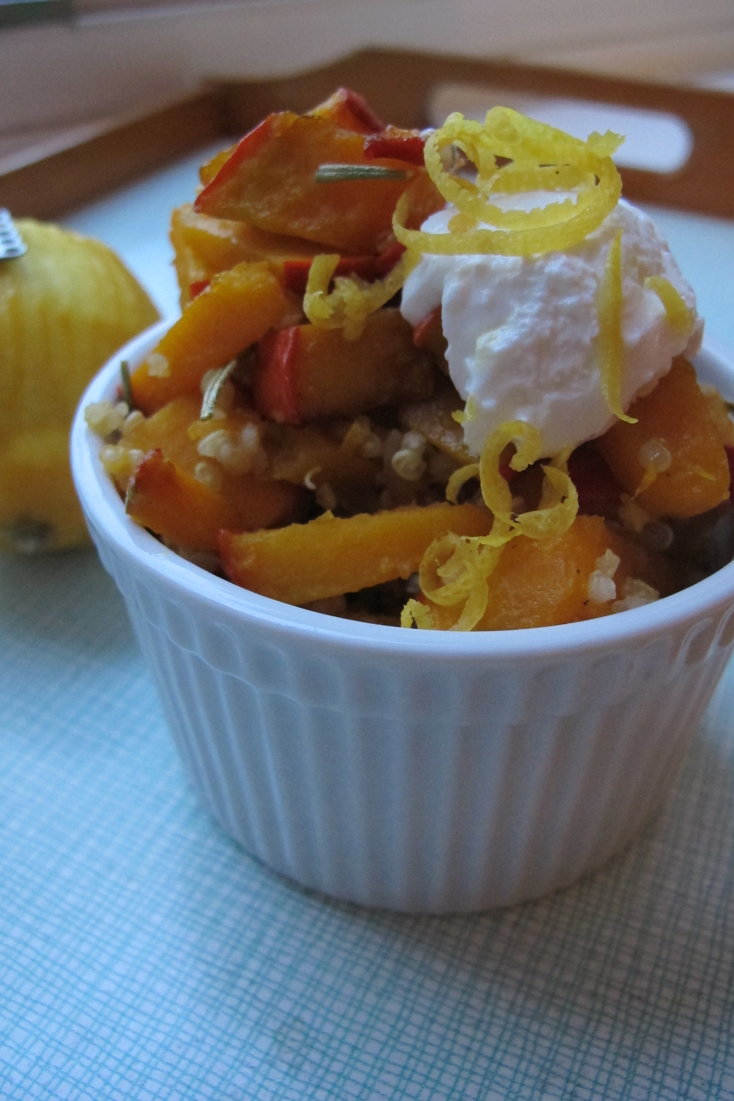 - Gekochtes Quinoa unter den Kürbis mischen und Käse-Zitronen-Mischung darauf geben. Einfach, schnell und lecker!