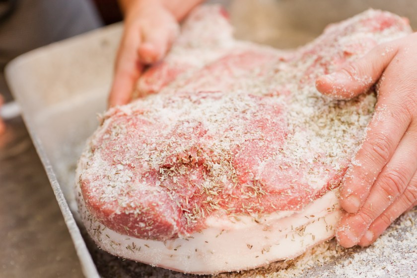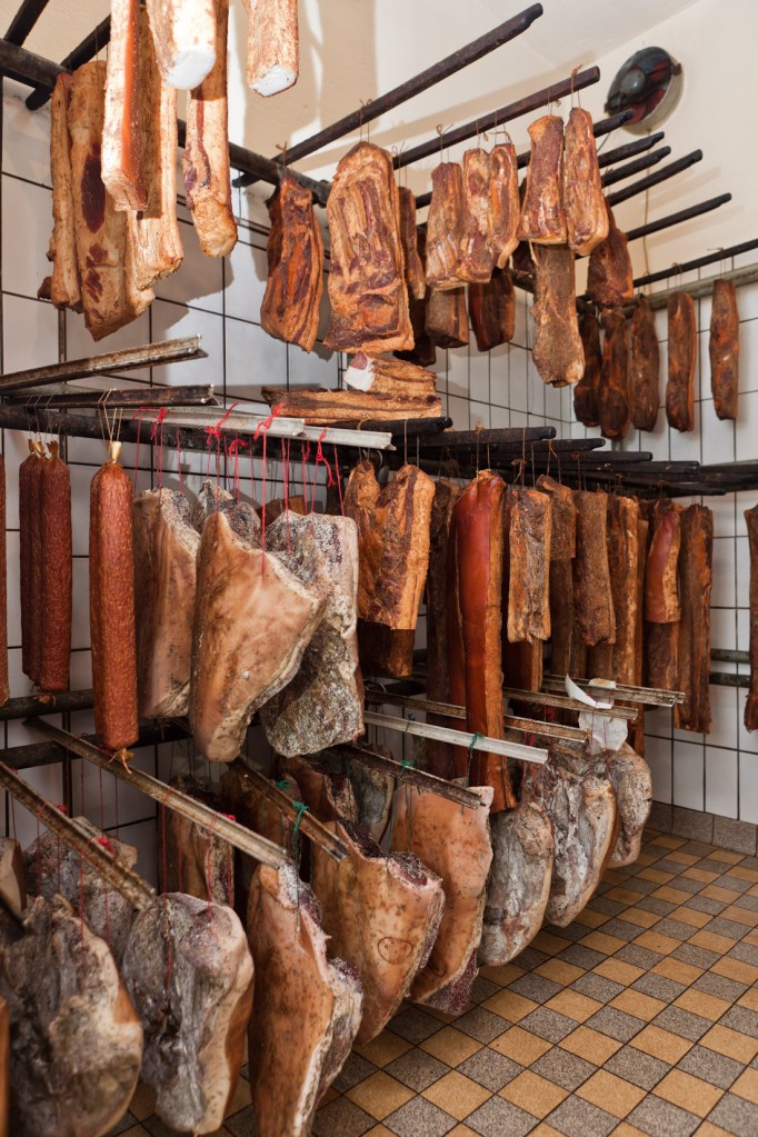 Gemeinsam haben wir Prosciutto eingesalzen, die Selchkammer inspiziert und dann, als wir in der Speckkammer gestanden sind, habe ich mich wirklich gefühlt wie die Made im Speck. Herrlich! Von jeder Wurst hätte ich am liebsten abgebissen.