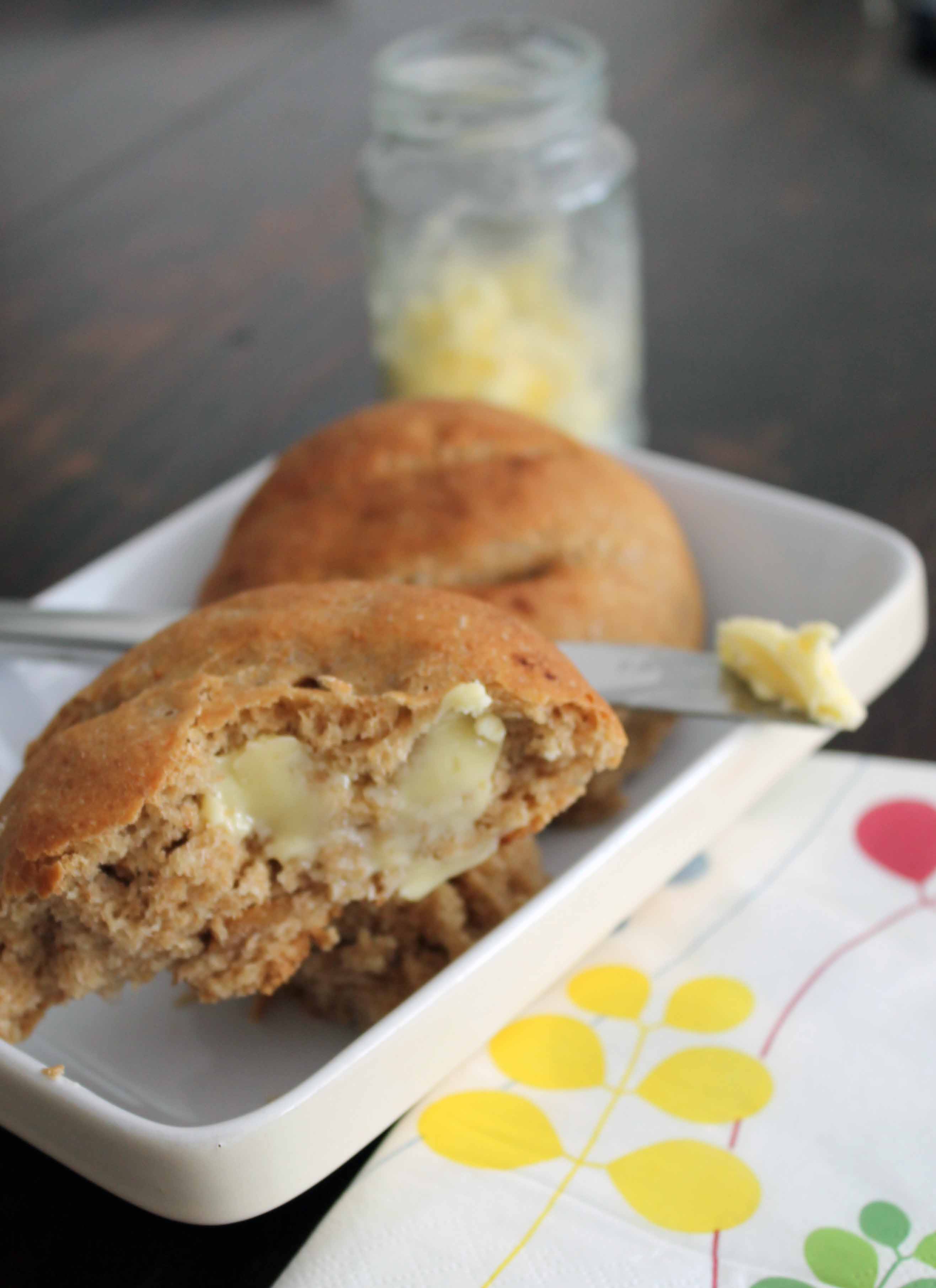 Aber das ist ja schon wieder Schnee von gestern. Erzählen wollte ich es trotzdem, weil Birgit schon wertschätzend gemeint hat „Des is schon guard, wenn man a Schwester hod, de guard kochen kaun!“. Daher habe ich sie quasi am Sonntag wieder kulinarisch verwöhnt und uns unter anderem ein tolles Brot gebacken, von dem ich euch das Rezept geben möchte. Es war auch am nächsten Tag noch ein kleines Gedicht. Birgit hat uns dazu Butter frisch geschüttelt. Als Nachspeise habe ich uns Vanillepolenta mit Joghurt und frischen Erdbeeren zubereitet. Das Rezept ein anderes Mal, weil wir einfach nicht aufhören konnten.