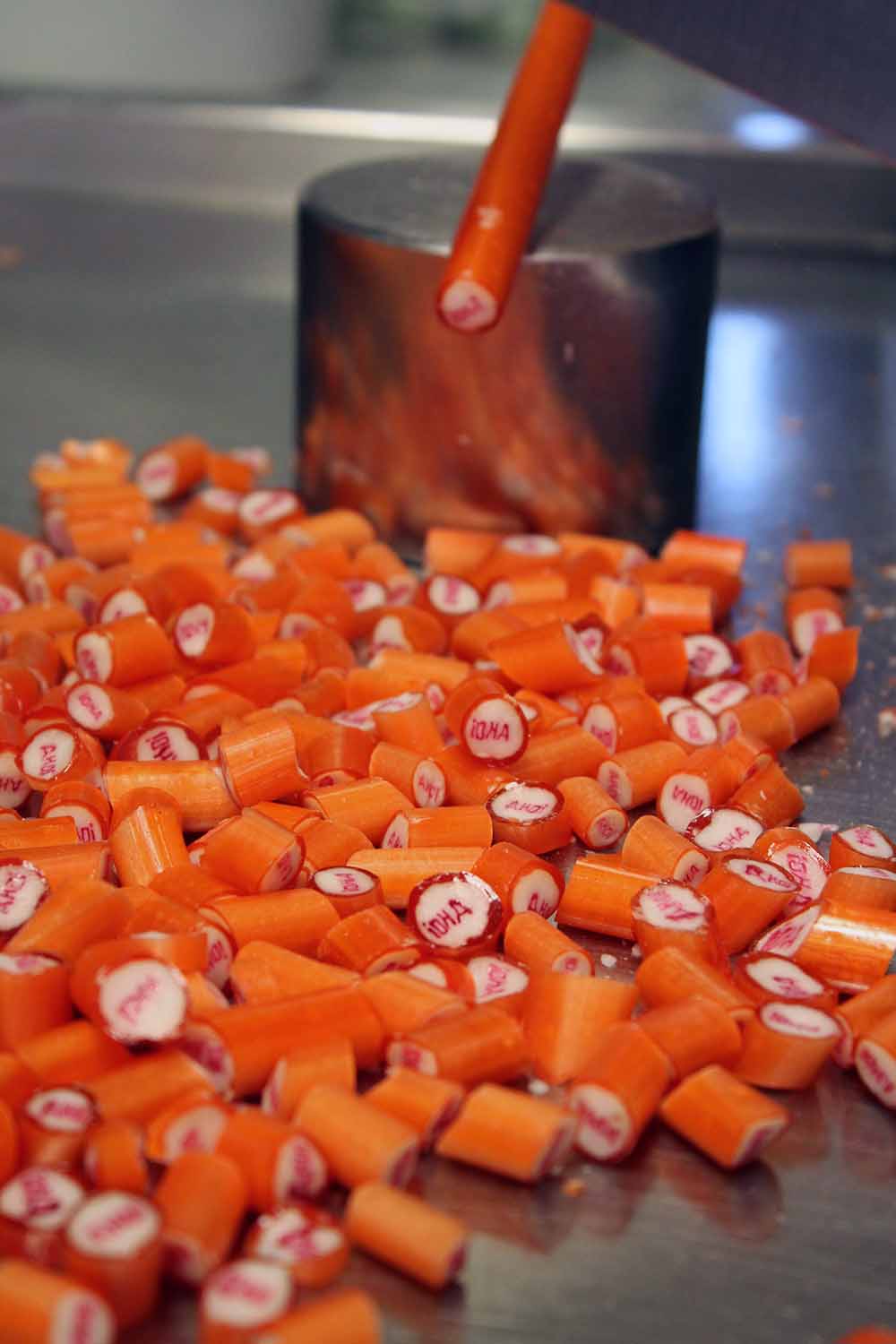 Pro Tag werden durchschnittlich 70 kg Bonbons im Laden auf diese Weise hergestellt und aufs Jahr gerechnet knapp 15 Tonnen (!), die im Laden und im Internet abgesetzt werden. Zusätzlich wird auch noch Fudge produziert.