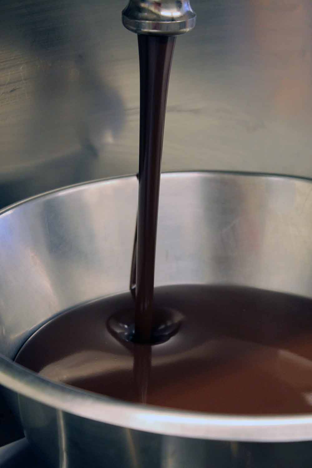 Die Temperatur der Schokolade ist ausschlaggebend für die Verarbeitungsmöglichkeit. Mit dem Lippentest können Geübte erkennen, ob die Schokolade die richtige Temperatur dafür hat.