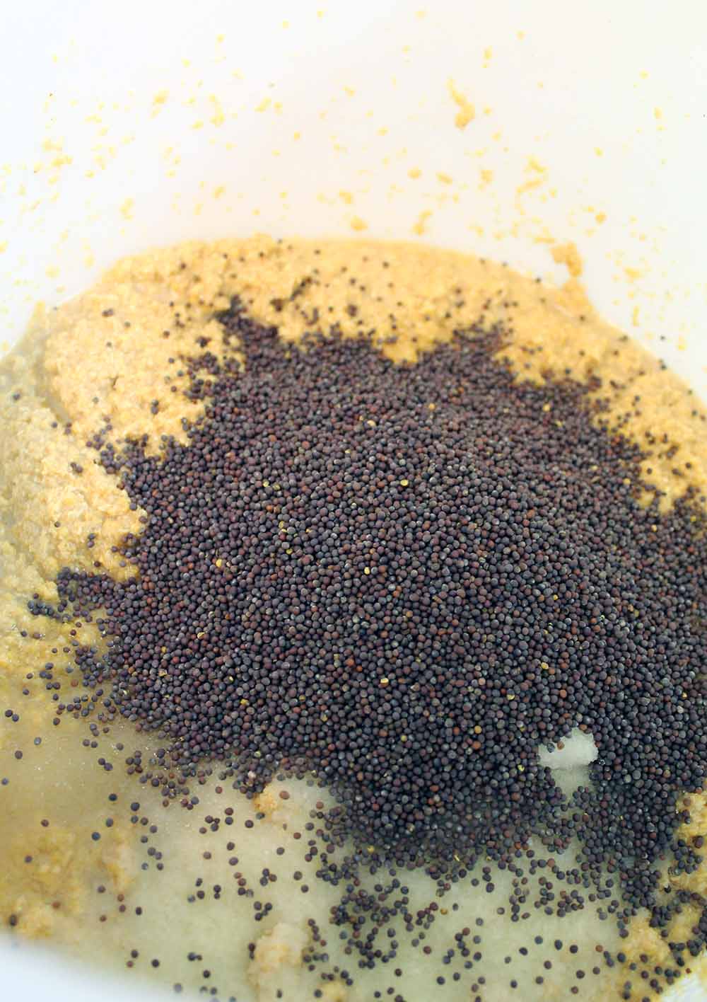Wie produziert man Senf? Folgende vier Grundzutaten sind dafür notwendig: Senfkörner, Essig, Wasser und Zeit!
