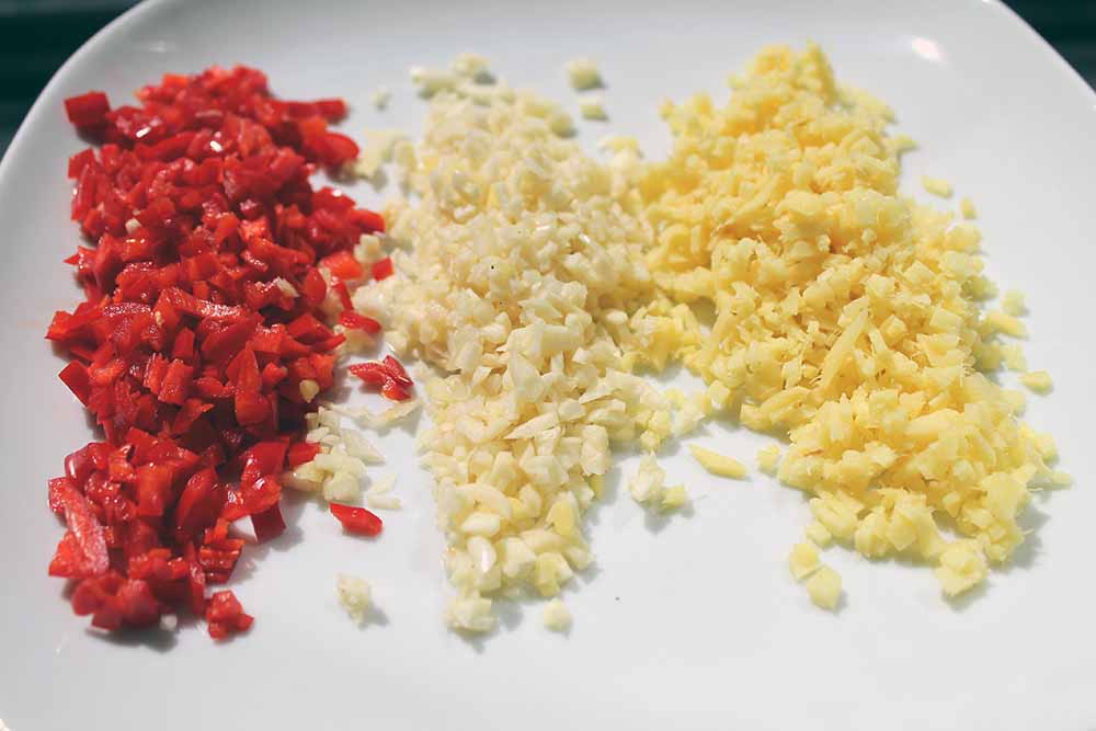 Fürs große Küssen war das Menü nicht geeignet. 😉 Viel Knoblauch, Chili, Gewürze und frische Kräuter habe ich in den sechs Gängen verkocht.