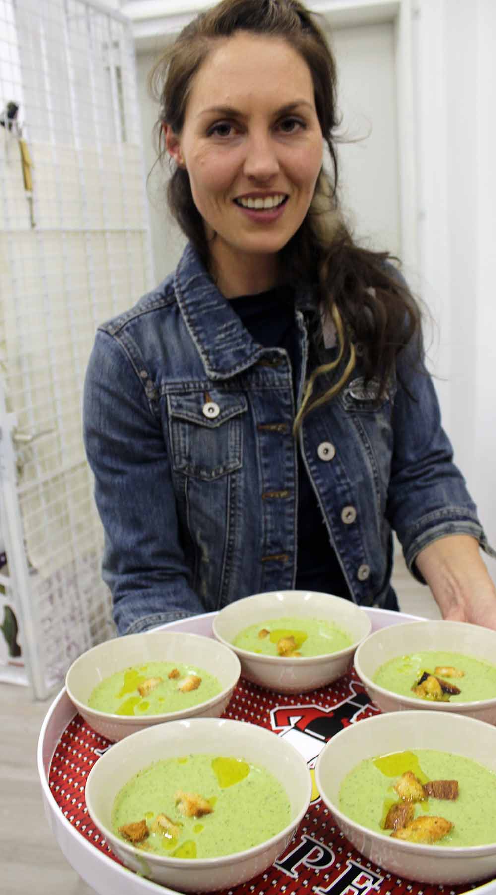 Die grüne Gazpacho mag für manche Gäste geschmacklich und optisch eine Überraschung gewesen sein, aber hat hoffentlich den Meisten geschmeckt. 😉 Hunger ist ja normalerweise ein guter Koch, aber nachdem Unmengen an Brot verschlungen wurden, hat wohl in diesem Fall eher der Geschmack den Teller geleert.