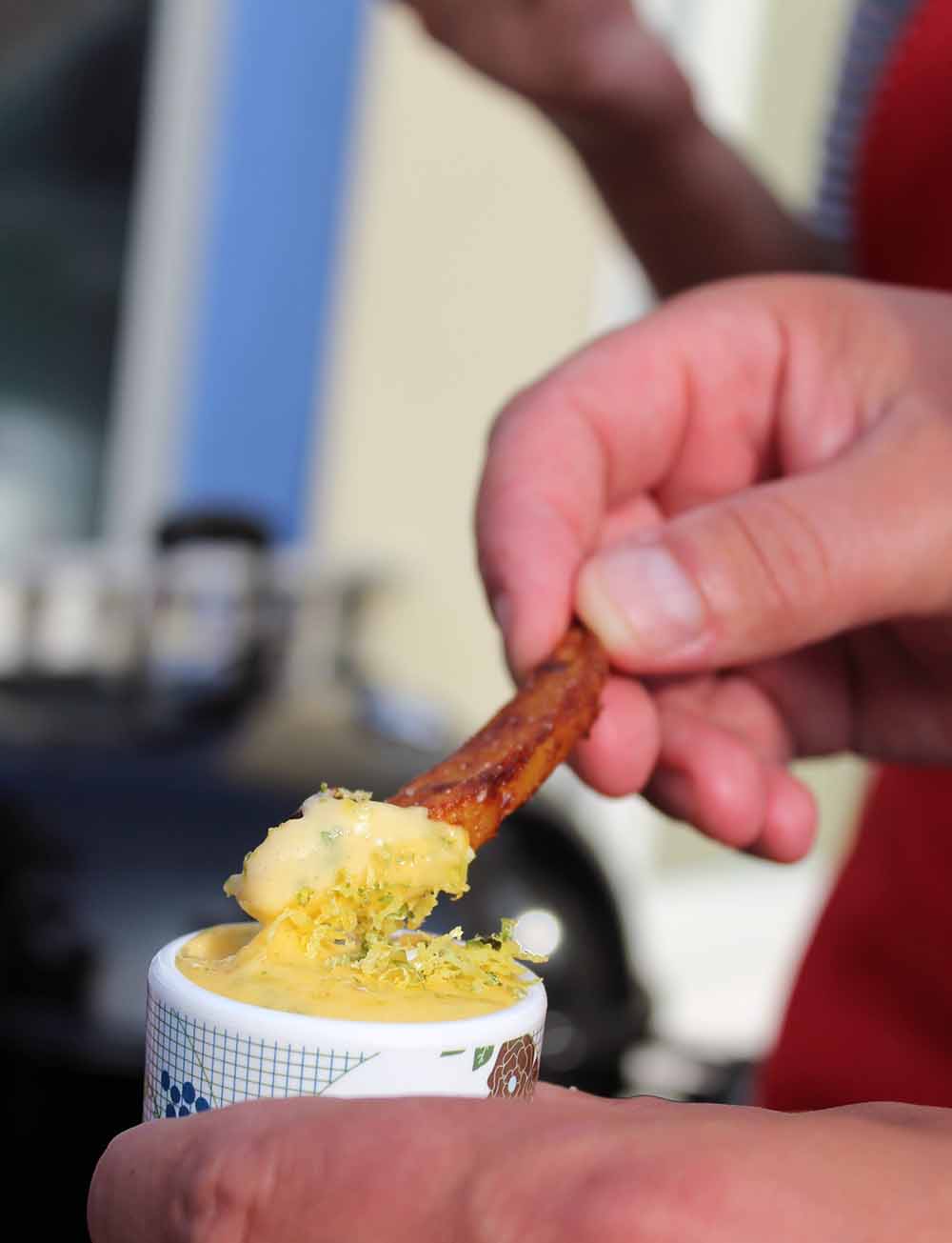 daher auch nicht fehlen. Die selbstgemachte Mayonnaise hat ja mit der Gekauften wirklich sehr wenig zu tun und verfeinert mit Koriander und Zitrone ergibt sich eine schöne Überleitung zur kolonialen, holländischen Vergangenheit.