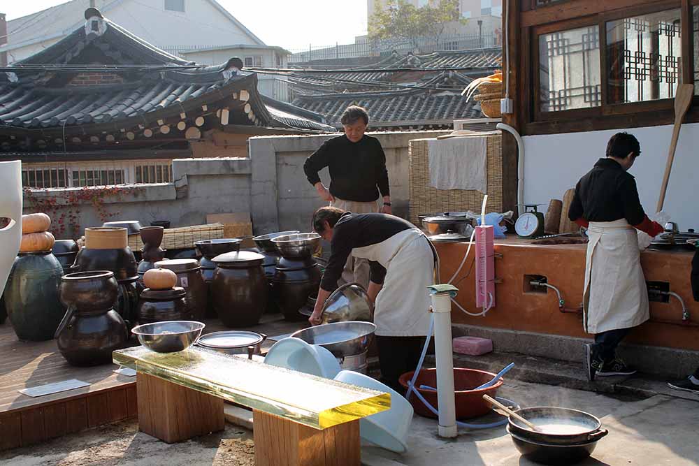 Das Bukchon Village ist Ausstellungsort und Zentrum für die Erhaltung von traditioneller Erzeugung von Soju. „Essen und Trinken sind wesentlicher Bestandteil von unserer Kultur und daher müssen wir dem gezielt Aufmerksamkeit schenken, damit die Kunst der Herstellung nicht verloren geht.“ umschreibt Herr Dong-Hwan Kim seine Motivation und die Idee für die Eröffnung dieser speziellen Ausstellungseinrichtung.