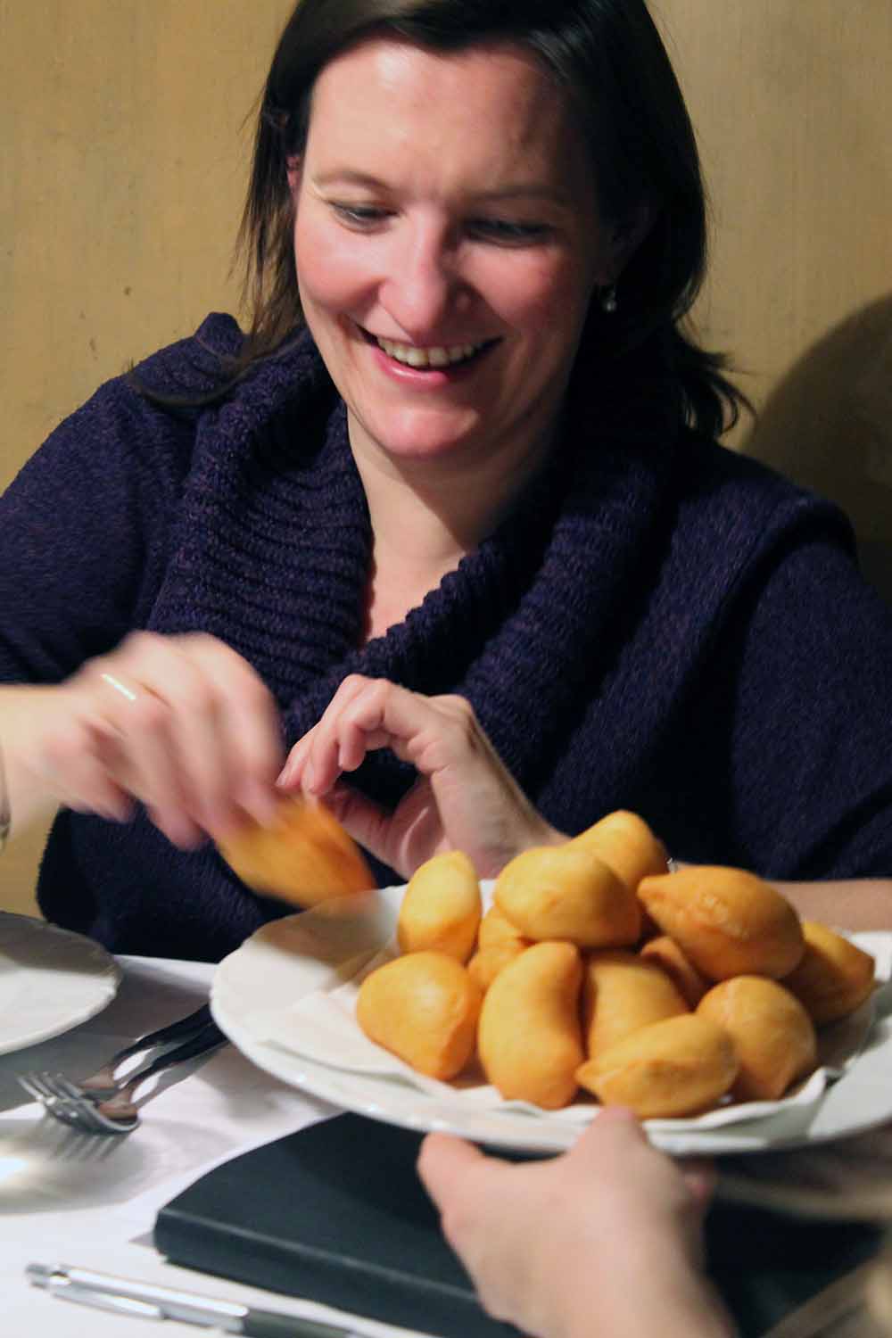 Dass die Südtiroler Küche nichts für Diäteten ist und es auch Frittiertechnisch groß zur Sache geht, erfahren wir beim Abendessen in der Maso Runch, in der ladinische Küche zubereitet wird. Tirtler, mit Ricotta gefüllte Krapfen, die im heißen Fett heraus gebacken und mit lauwarmen Honig serviert werden, sind mit Sicherheit keine Schonkost. Aber nach einem intensiven Tag auf der Skipiste passt auch hier der Gewürztraminer hervorragend zu den Röstaromen des Frittierens.