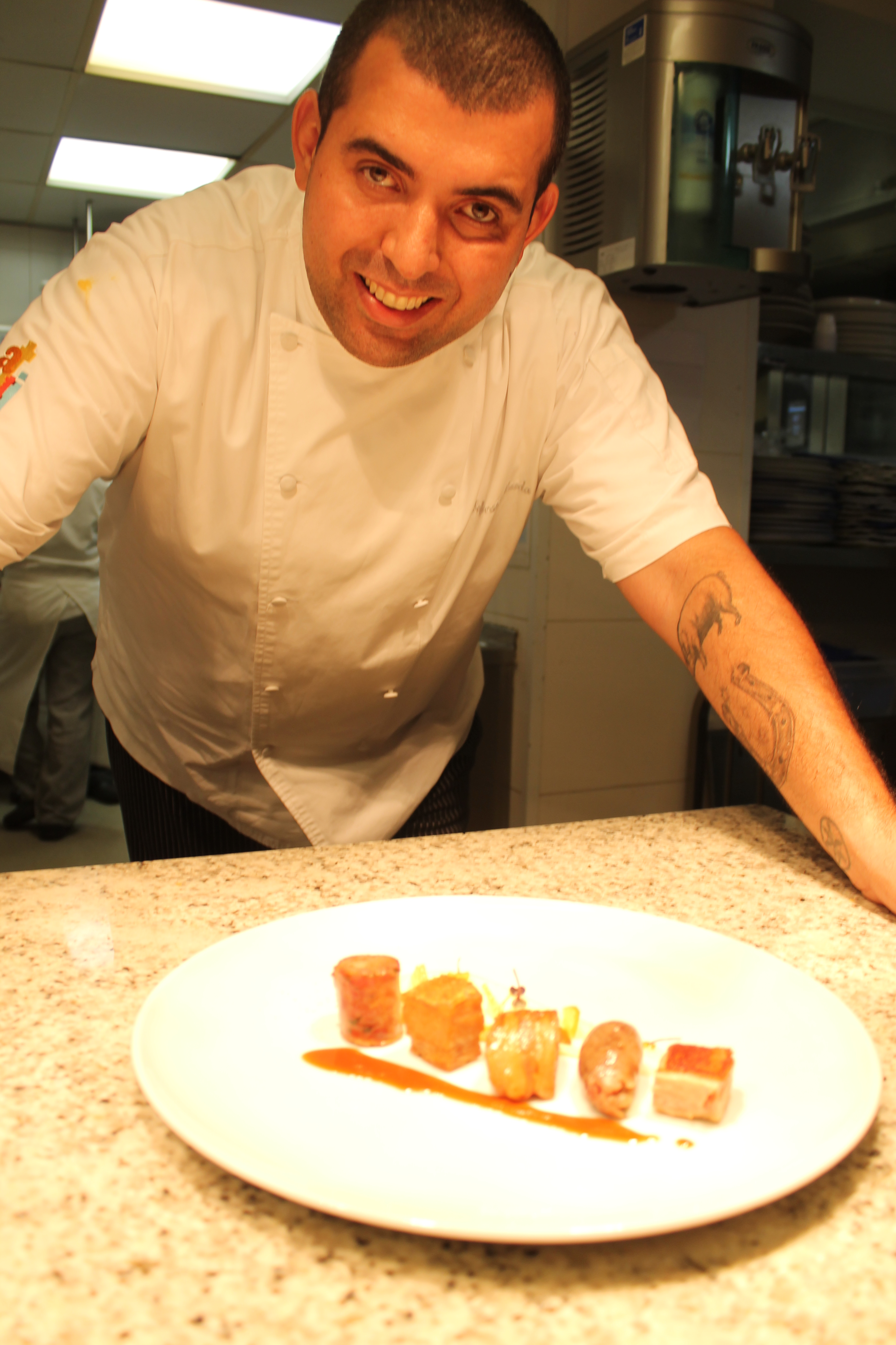 Jefferson Rueda erklärt mir in der Küche im Attimo (Sao Paulo) seine Liebe zum Schwein