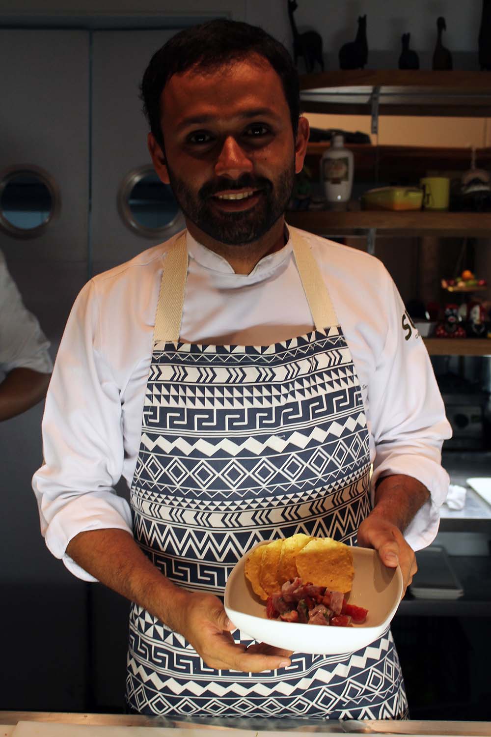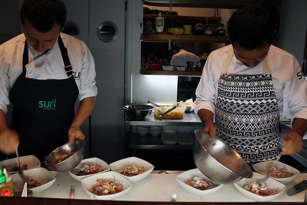 Dagoberto Torres stammt aus Kolumbien und hat nach wechselnden Studienversuchen begonnen in einer Straßenküche in Bogota zu kochen, anschließend Pizza im Restaurant seiner Großmutter in den Ofen geschoben, um nach einer Ausbildung in der bekannten kolumbianischen Kochschule in der Nobelküche D.O.M. vom weltbekannten Alex Atala zu arbeiten. Vor zwei Jahren hat der 30jährige Dagoberto jetzt seine eigene Ceviche Bar SURI in Sao Paulo eröffnet, wo er persönlich an der Ceviche Bar arbeitet und ein Ceviche nach dem anderen zubereitet.