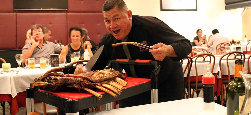 Natürlich auch „C“ für Churassco (sprich „Tschur-ras-ko“), dem brasilianischen Grill. Als große Grillanerin bin ich natürlich sofort an meinem ersten Abend in Rio de Janeiro in den „Churrascaria Palace„, der als Institution in Rio gilt und wo bei Live-Bossa-Nova-Musik ordentlich geschlemmt werden kann. Ein großes Vorspeisenbuffet, ein fahrender Caipirinha-Kellner, gegrilltes Gemüse und viel gegrilltes Fleisch wird hier bei guter Qualität geboten.