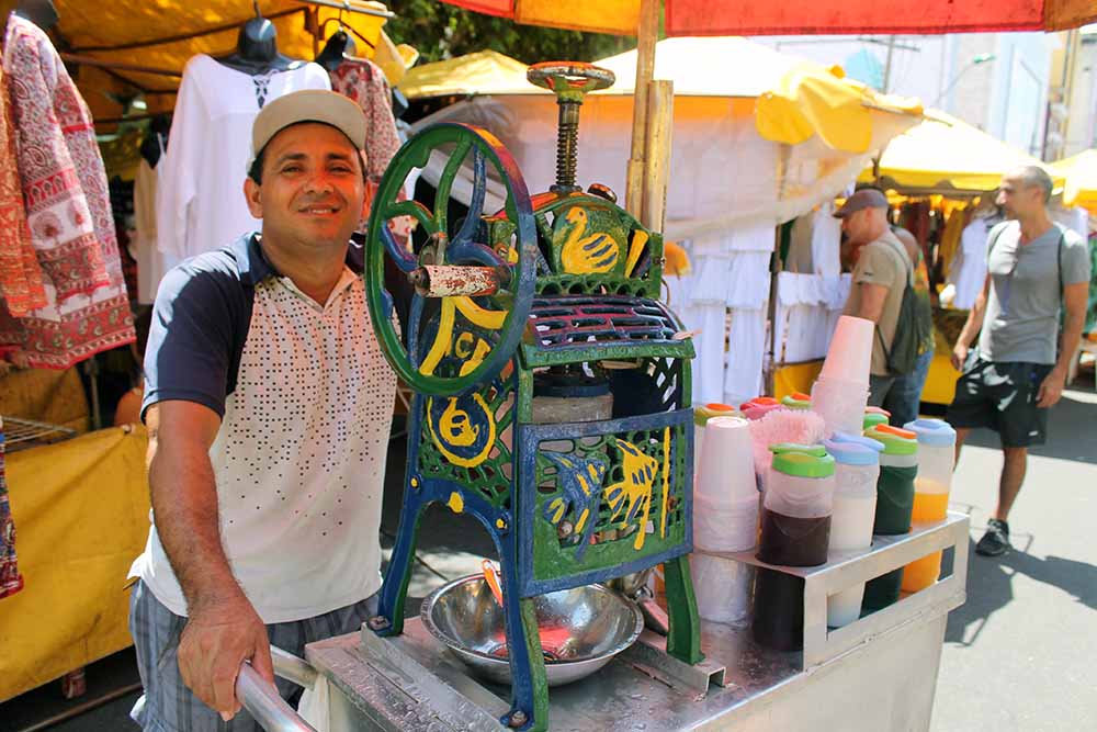 Wer frisch gepresste Säfte liebt, für den ist Brasilien der Himmel auf Erden. Eine so schöne Saftpresse, wie hier am Sonntagsmarkt in Manaus, haben allerdings nur wenige Stände zu bieten.