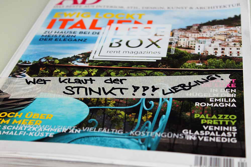 Zeitschriften-Diebe stinken anscheinend in Berlin! Denn Berliner-Vodookräfte schützen vor langen Fingern. Gesehen im #Cafe_Liebling