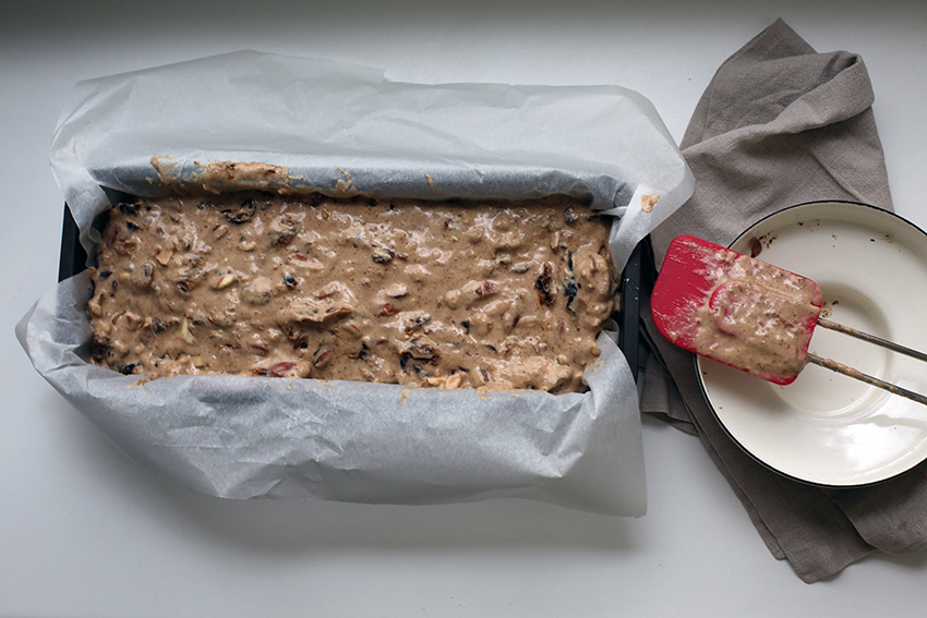Hier das leicht veränderte Früchte-Nuss-Brot aus dem Kochbuch  VEGAN LOVE STORY