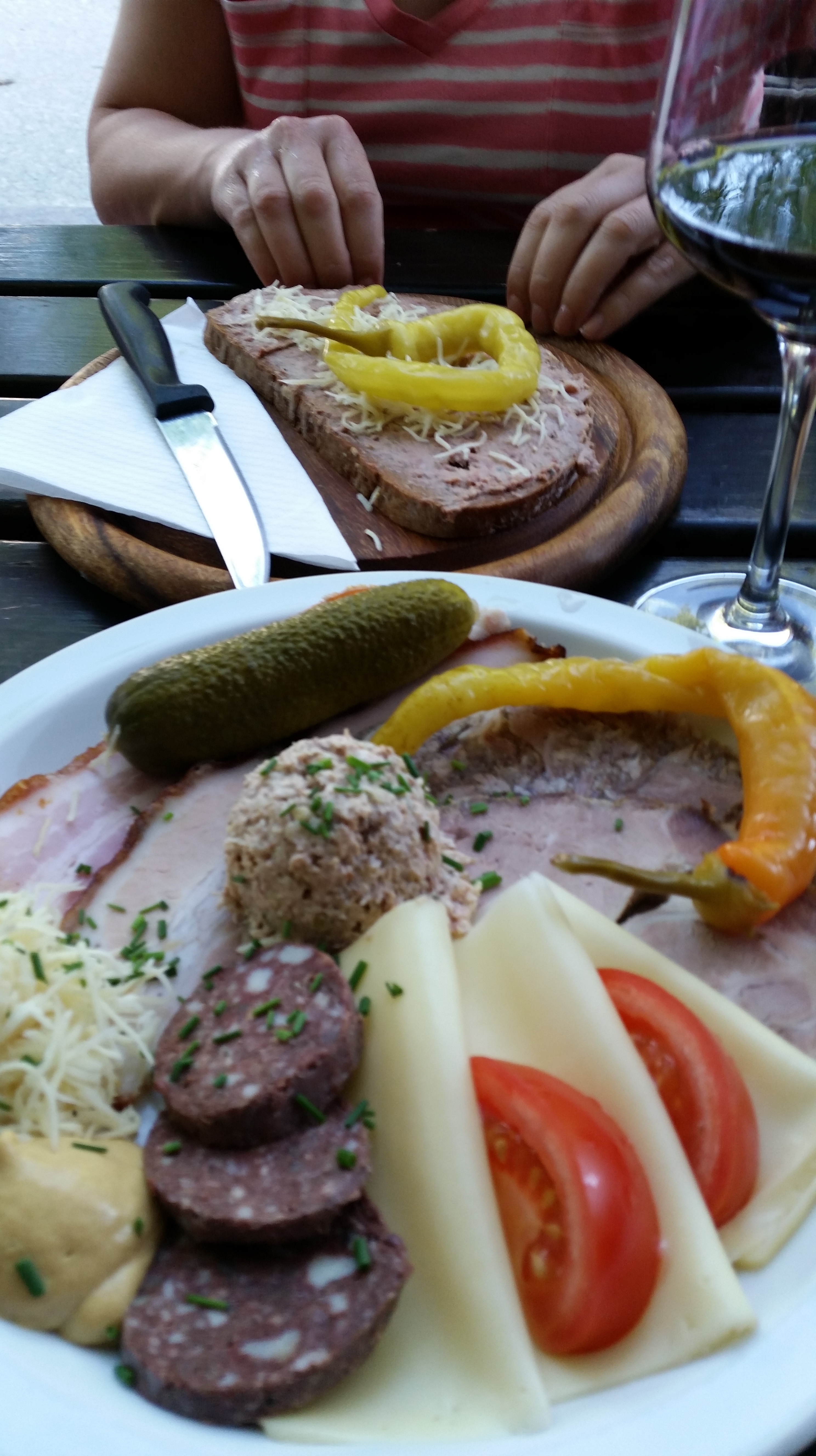 Nach getaner Arbeit an einem anstrengenden Arbeitstag am Strand wollten wir natürlich gerne beim Heurigen uns kulinarisch erfreuen. Leider war sowohl der Heurige von Tobias Müller Schwein und Wein beim Kloster am Spitz auf Urlaub und auch die Kellergasse in Breitenbrunn wollte uns nicht. Daher mussten wir kurzfristig auf die Kellergasse in Purbach ausweichen, wo der Rotwein und die Brettljause hungrig auch gemundet hat.