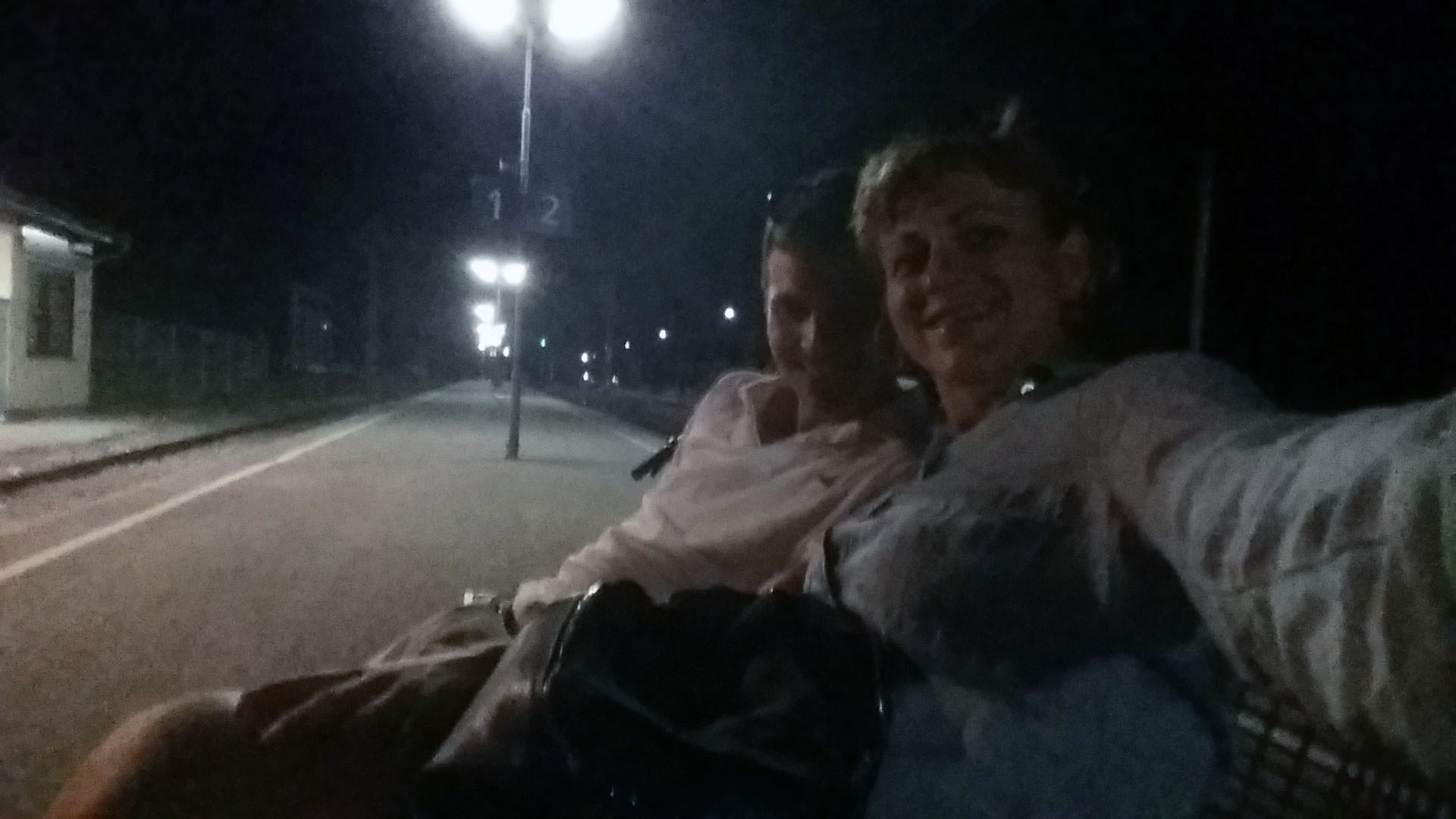 Unsere Pferde satteln, um den letzten Zug von Purbach um 21 Uhr nach Wien zu bekommen. Glücklicherweise rollt man innerhalb von 5-7 Minuten nur bergab zum Bahnhof und so warteten wir satt und glücklich auf unseren Zug, weil wir mit Ausblick, Service, Essen und Wein an diesem Abend einfach vollkommen zufrieden waren.