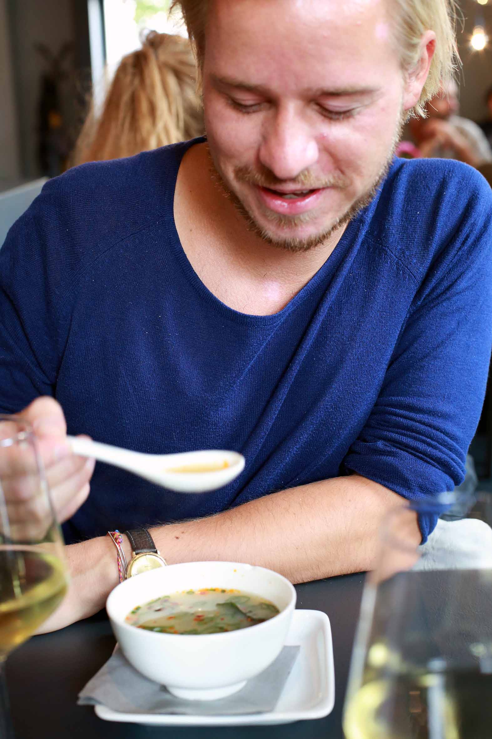 Erleichterung also, dass wir uns beide nicht versetzt haben, trafen wir uns schlußenlich in der Chinabar an der Wien und stoßen mit einem Glas Grünen Vetliner auf unser Wiedersehen an. Von 11:30-18:00 Uhr gibt es die reduzierte Mittagskarte in der Chinabar, die in großen Suppentöpfen daher kommt.