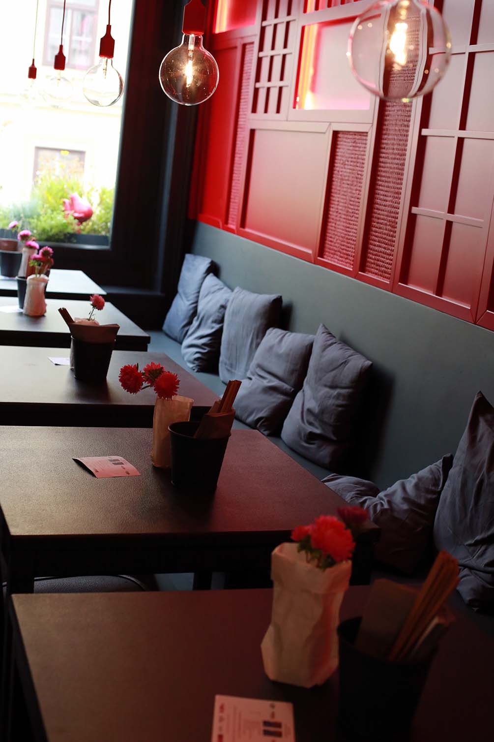 Überschaubare Größe in der Chinabar an der Wien mit kuscheligen Bänken